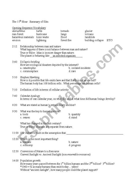 Students will take a deeper look. Web the 11th hour worksheet movie summary: Why is it weird when we say save the environment?,.