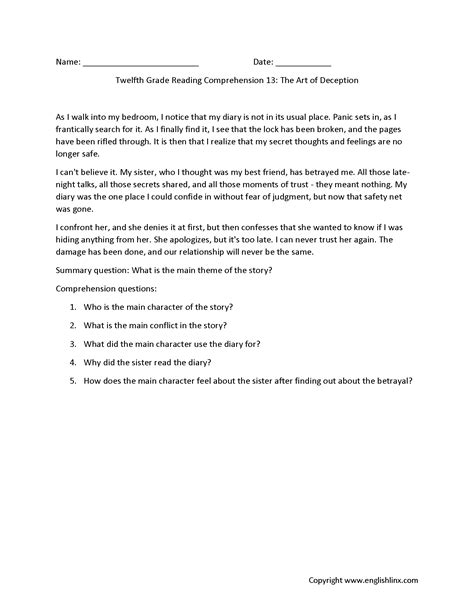 5 Best Images of Printable 12th Grade Reading Comprehension Worksheets from www.printablee.com