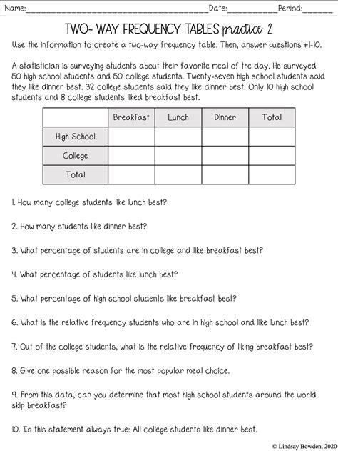 2 Way Frequency Table Worksheet. The table shows the results of a survey about what the engineers said their favorite subject was in middle school. With an organized worksheet, children will be in a position to describe and explain the.