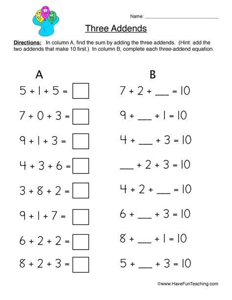 18 3 Addends Worksheet First Grade / from www.worksheeto.com