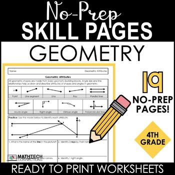 This 4.G.1 Ccss Aligned Geometry Packet Includes 14 Practice Sheets To Teach/Reinforce Geometry Concepts About Lines And Angles.