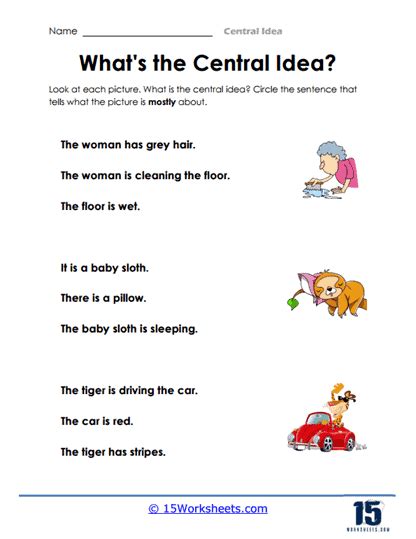 Main idea & details part 1. It represents the essential point that the author is trying to convey. Circle the sentence which describes what the short.