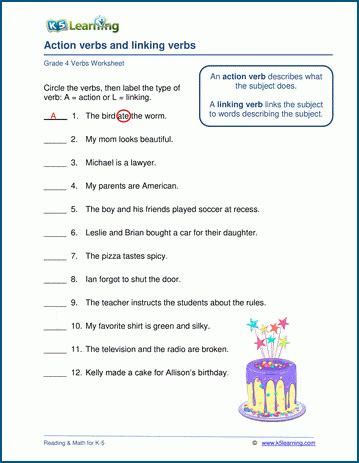 Some of the worksheets for this concept are grade 4 action linking verbs c, grade 4 action linking verbs a,. Identify verbs in a sentence as action or linking. Web browse printable 4th grade linking verb worksheets.