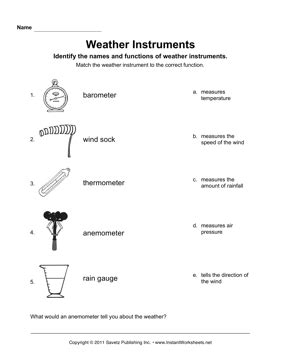 Worksheets are weather instruments work, weather instruments, weather. This is the pre and post assessment i give my students on our weather unit for 4th grade science. Weather instruments add to my workbooks (61).