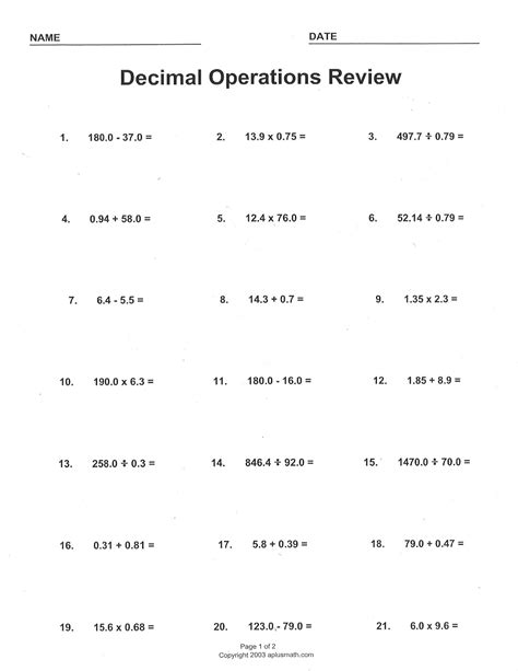 Web Browse Printable 6Th Grade Decimal Worksheets.