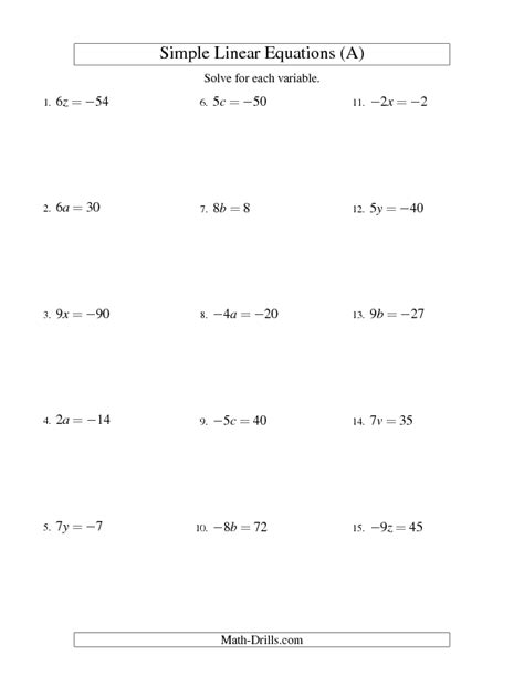 The Linear Equation Worksheets For Grade 7 Helps Students To Understand Various Terms Such As Constants And Variables That.
