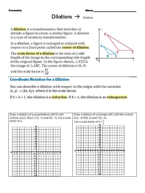 Web Browse Printable Dilation Worksheets.