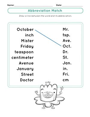 Web make an abbreviation book. Web give your second graders practice identifying common abbreviations with this fun matching activity in which students draw lines to match words to their abbreviations. Web use these worksheets to help students learn proper abbreviations for common words.