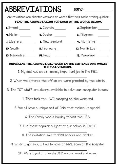 Web Help Keep Things Short And Sweet With These Abbreviations Worksheets For Third Graders.