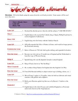 Web This Is A Simple Matching Worksheet To Help Students Understand Of Major Accomplishments The Attributes Of Europe's Absolute Monarchs.