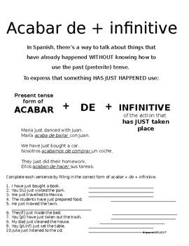 Web students translate 10 acabar de + infinitive english to spanish sentences, plus 5 demonstrative adjectives with spanish rooms in the house vocabulary words. Web spanish acabar de + infinitive worksheets. This resource contains:15 english to spanish sentence translations with.