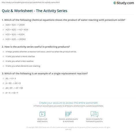 Web activity series interactive and downloadable worksheets. Web practice this quiz or assign it to students. Find millions of free quizzes, pdf worksheets and tests on activity series and other topics.