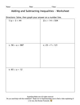 Adding And Subtracting Inequalities Worksheet. That won't change by adding or subtracting the same thing to both sides of the inequality. Web like you add and subtract, multiply or divide in the regular equations, you can work the same with inequalities.