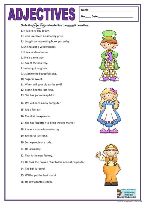 Web adjectives worksheets for classroom learning. An adjective is simply a word. Read the sentences, choose the right.