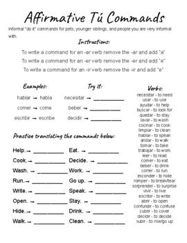 Web This Is A Game To Practice Forming Affirmative Tú Commands In Spanish.