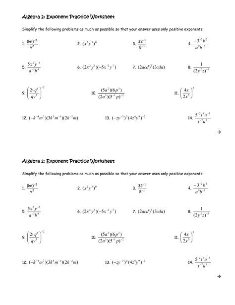 Web free algebra 2 worksheets created with infinite algebra 2. Web algebra 2/honors algebra 2 free worksheet with answer keys on exponents. Web exponent worksheets including an introduction to exponents, reading and writing simple exponents, powers of ten, whole number, fractional and decimal bases, negative.