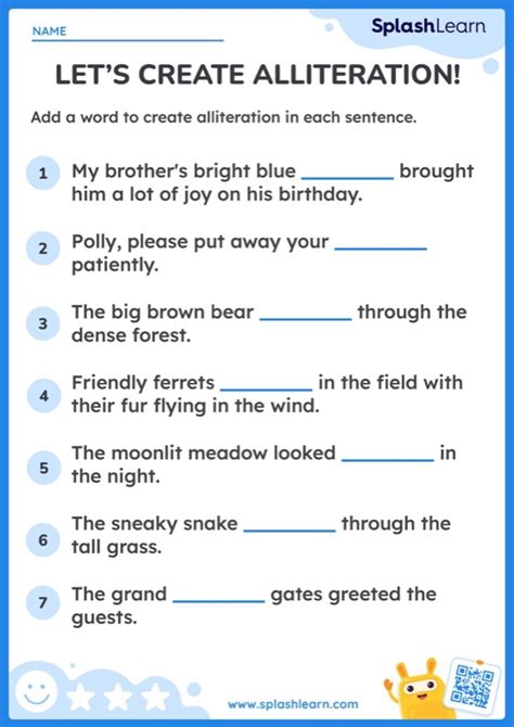 Add a word from the word box to. Web apart from rhyming, alliteration is some of the most fun you can have with words. Web alliteration is a poetic technique or literary stylistic device where a series of words in a sentence have the same first consonant sound.