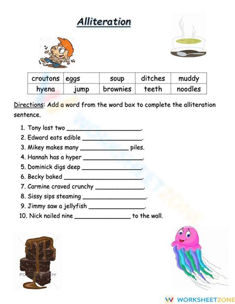 Web these worksheets will have students identifying and creating alliteration in practice sentences using prompts, excerpts from literature, and given words and phrases. Web the fourth grade emergency sub activities unit includes 3 days of integrated activities using picture books to leave for a substitute in a pinch! Web simply click on the alliteration worksheet title to view the details or download an alliteration worksheet pdf.
