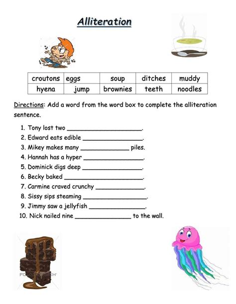 Alliteration Worksheets in 2021 Alliteration, Alliteration worksheet from www.pinterest.com