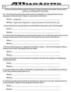 Web Our Allusion Worksheet Pdfs Include Identifying Allusions, Identifying The Source Of Allusions As Literary, Biblical, Or Mythological, Writing Sentences With Allusions In.